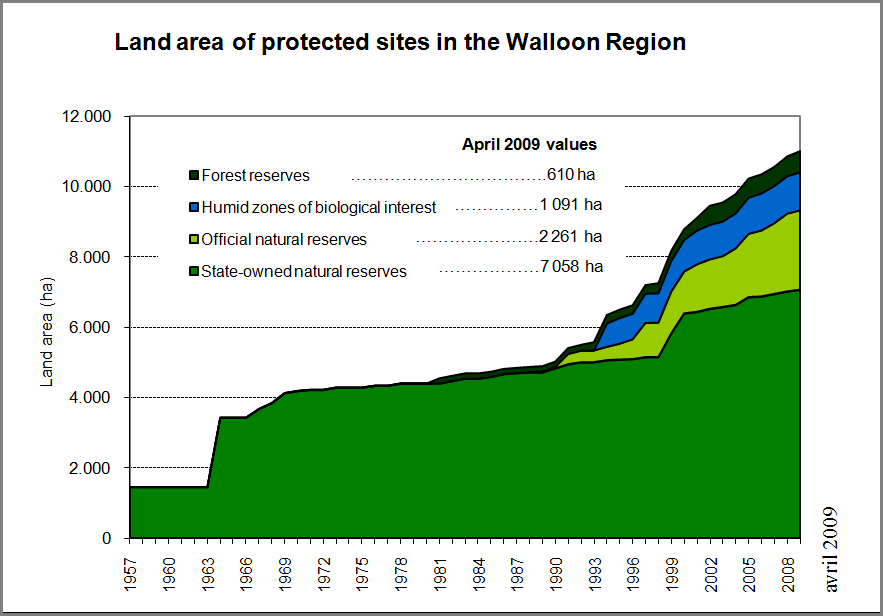 Figure 15: Land area of protected sites in the Walloon RegionSource : SPW – DGO3 – DNF
